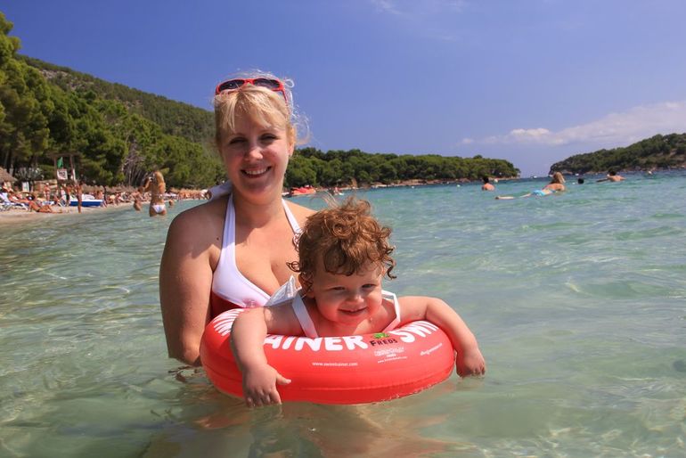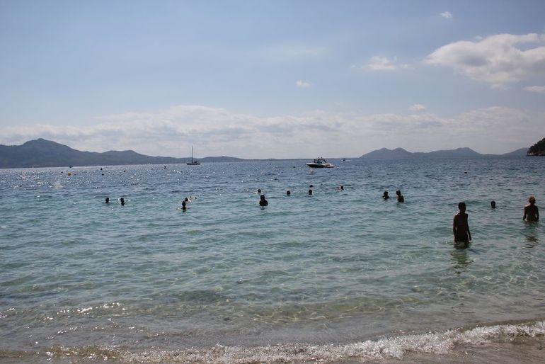 Вход в воду очень пологий, долго мелко, вода прогревается хорошо! Вода просто нереального цвета! Если бы не люди вокруг, то можно представить, что ты где-нибудь на Карибах, или на Мальдивах)) Там, где расположились мы, народу было не много, всего 2 ряда лежаков. Стоимость 2 лежака и зонт на день 18 евро. Кстати, туалетов и раздевалок мы там не увидели, с этим на местных пляжах все плохо, поэтому приходилось ходить в близлежащий ресторанчик.