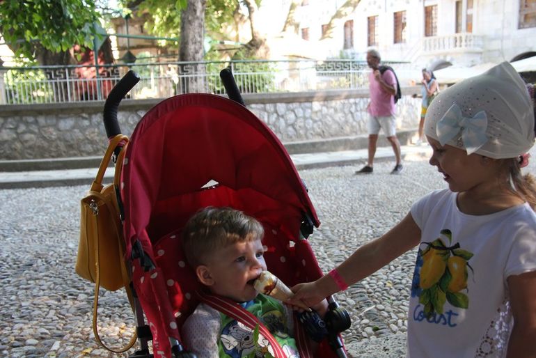 Увидев сначала Монастырь на горе, я думала что все, путь наверх нам с коляской и детьми не одолеть))