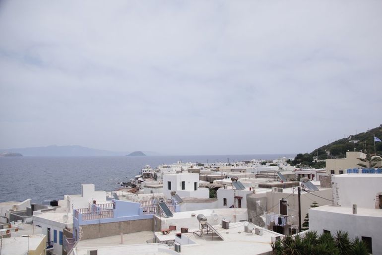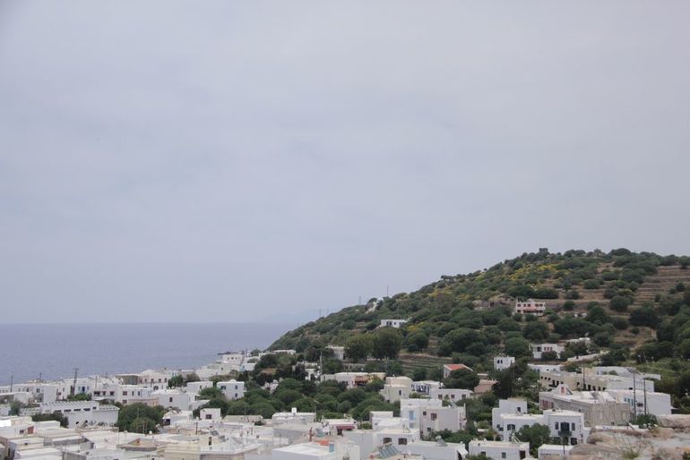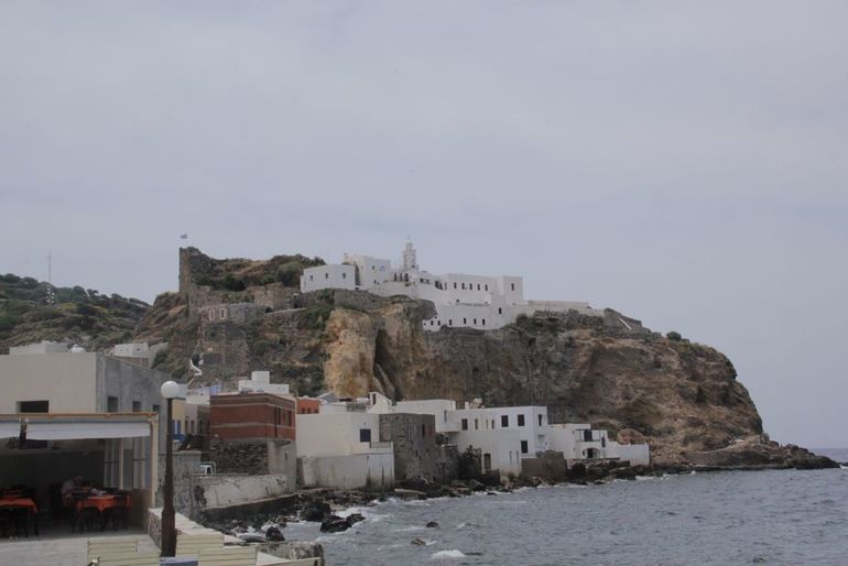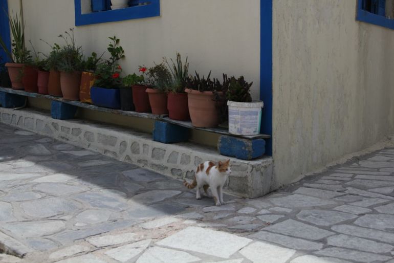 Побыв в Церкви, мы спустились вниз, и пошли гулять по улочкам Мандраки. Городок очень живописный, белые здания с синими ставнями, кошки у каждого дома, море, бьющее об камни, очень романтично.