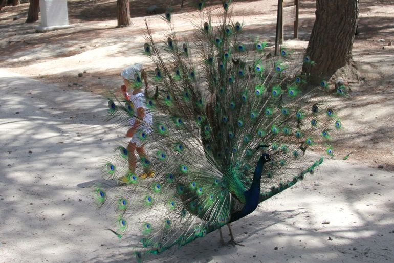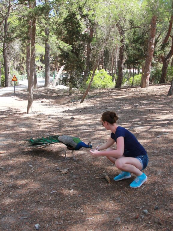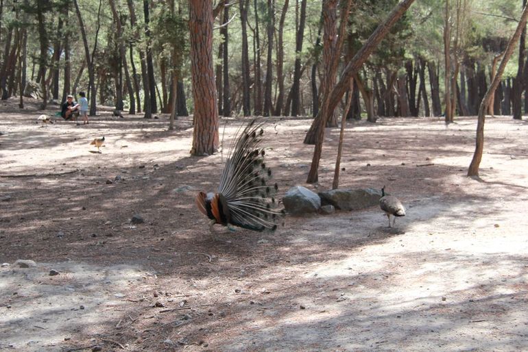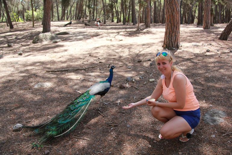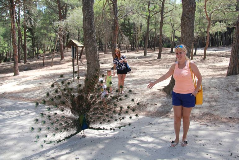Сначала поехали в лес Плака к павлинам. Павлинов там много, как много и котов. Только коты там все облезлые, видно их гоняют павлины, а не наоборот))))) Самцы были с красивыми хвостами, самки серые невзрачные. Взяли с собой булку, скормили ее птицам, погуляли, пофоткались. Детям понравилось)