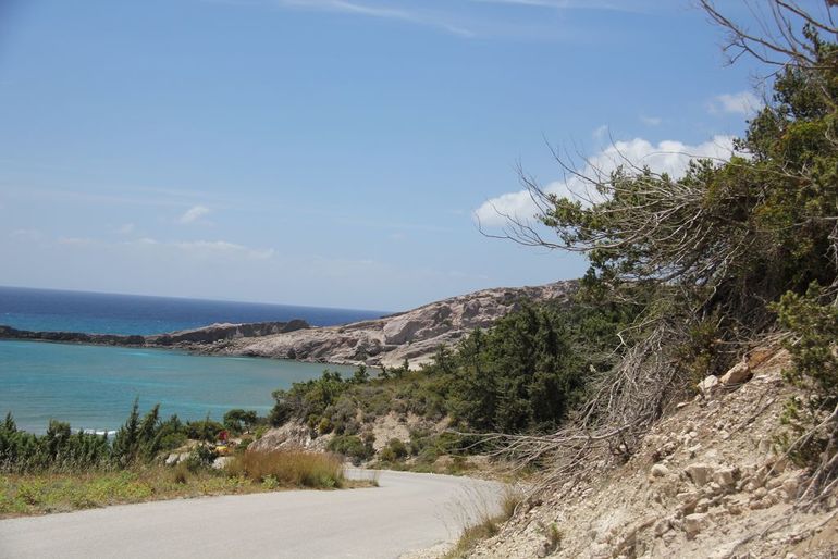 Еще один день мы решили посвятить поездке по Косу, предварительно арендовав 2 авто на всю нашу толпу из 9 человек. Арендовали в отеле у гида, цены не маленькие, но из-за 10-15 евро решили не заморачиваться с поездкой в Кардамену для аренды авто. Наша Фольцваген Поло механика стоила 55 евро на день, подруге достался Пежо автомат за 75 евро. Полная страховка и детские кресла включены в стоимость. Заправившись на ближайшей заправке всего на 10 евро (бензин по 1,7 евро/литр), мы откатали целый день по острову))