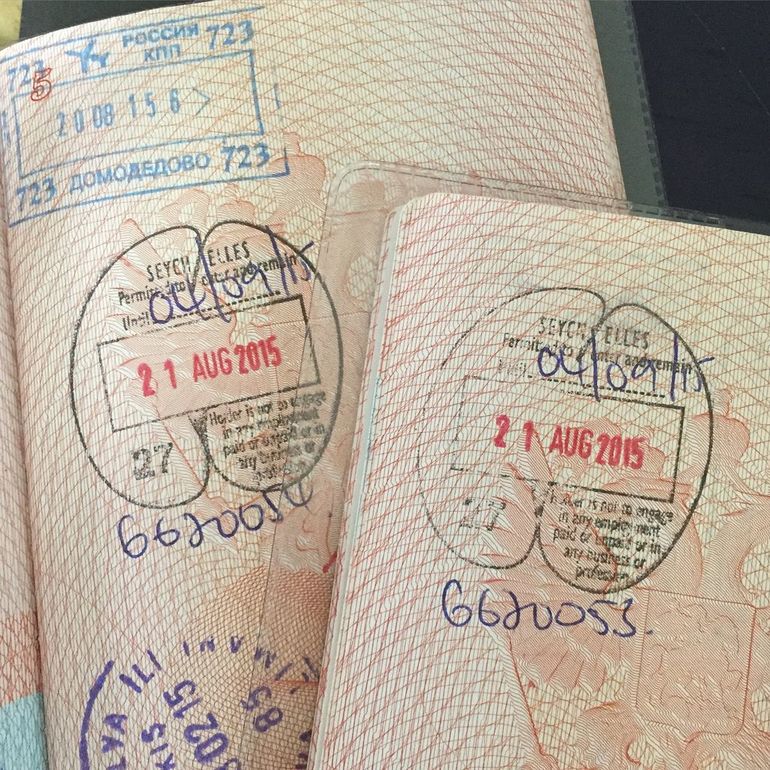 При прохождении пограничного контроля сначала вет.служба забирает один заполненный бланк и фотографирует тебя. Потом следует паспортный контроль. Просят предъявить все брони отелей и обратные билеты! И наконец заветные кокожопики в паспортах!))) Печать паспортного контроля Сейшел по форме напоминает силуэт символа сейшельских островов - кокосового ореха Коко Де Мэр!)