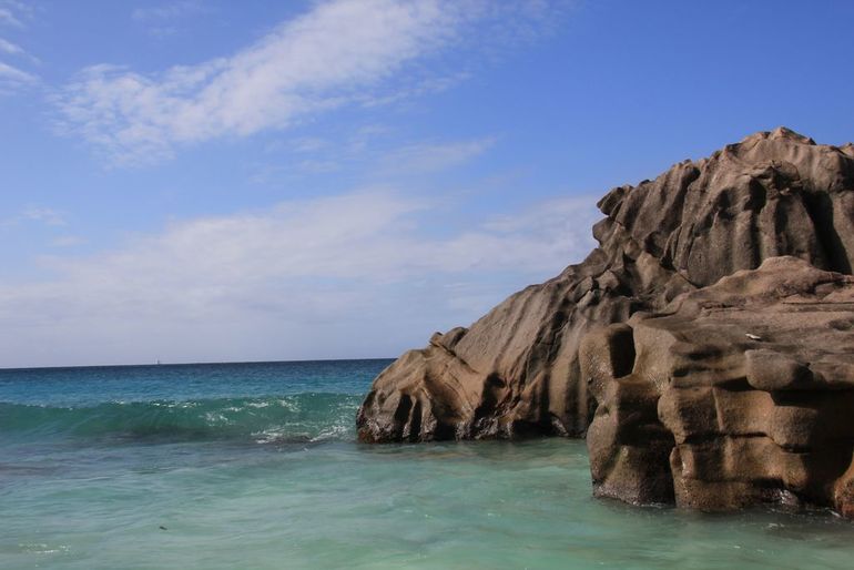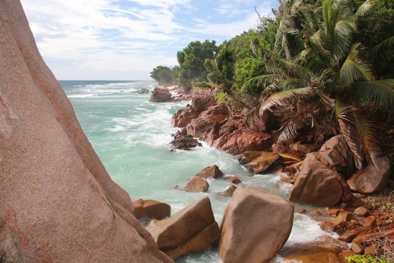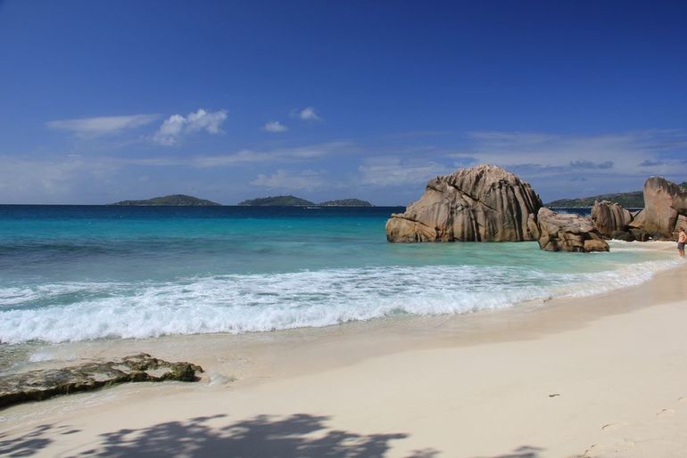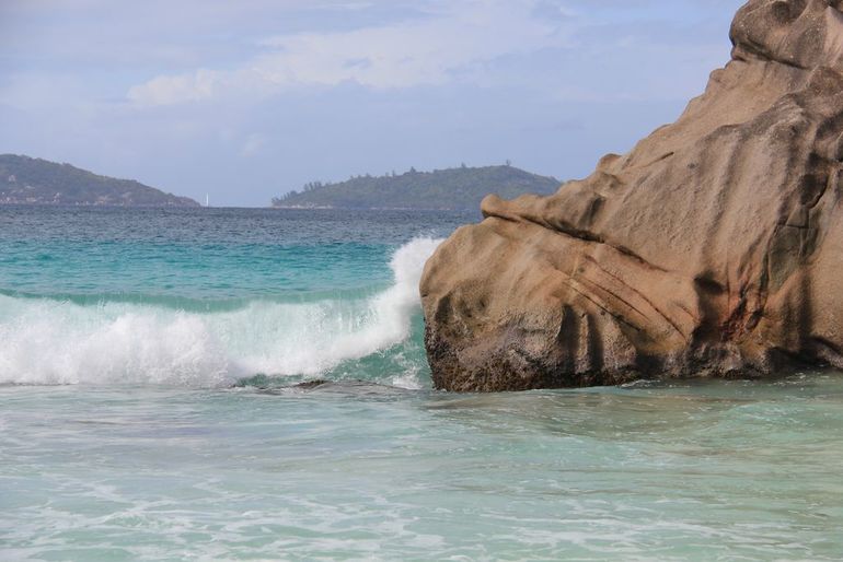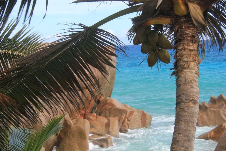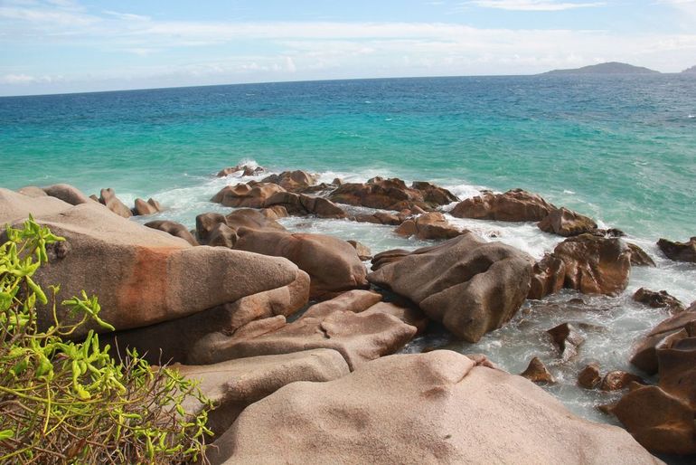 Ну и самое красивое в этом отеле - это его ПЛЯЖ! Anse Patates самый маленький, и самый живописный пляж на Ла Диге!) Да, из-за волн купаться довольно сложно. Иногда они тише, и можно зайти в воду подальше (желательно в спец.обуви), люди плавали с маской у камней. Когда волна посильнее, перейти ее до спокойной воды проблематично) Внешне кажется, что она небольшая, но сбивает и накрывает только так!) Но это ни капли не умаляет красоту этого места! Потому что такого количества живописных камней, сосредоточенных на таком коротком отрезке пляжа, нет больше нигде!) Готовы?))