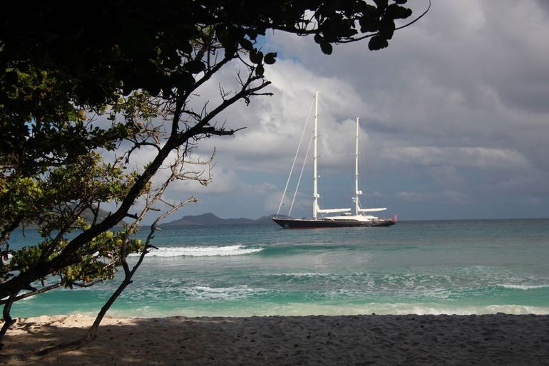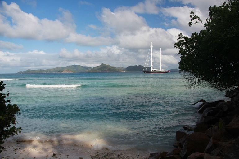 Расстояние до входа в парк примерно 3 км, по пути проходили опять Anse Severe, эта яхта несколько дней стояла напротив него: