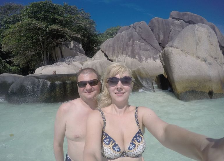 Вообще в этот период на Сейшелах был сезон юго-восточных муссонов, дожди шли часто, и ветер очень быстро гонит тучи! Т.е. могло быть пасмурно, через пол часа - яркое солнце, и через 10 минут - начаться проливной дождь) Предсказать невозможно! Один остров может быть затянут тучами, над другим - светить солнце!
