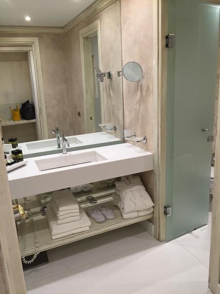 В номере пополняемый мини-бар с прохладительными напитками, санузел с полным набором мыльных принадлежностей, халаты, тапочки, сейф, фен, весы, в общем полный комплект, как обычно за исключением утюга) В санузле были и душ, и ванная, а также сушилка для вещей.