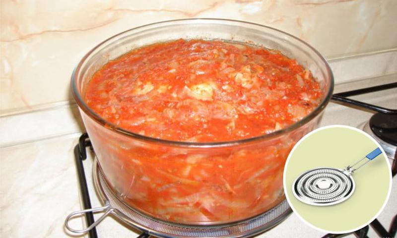 Минусы: нельзя ставить на газовую конфорку без рассекателя огня (фото ниже), может разбиться от падения и резкого перепада температур.