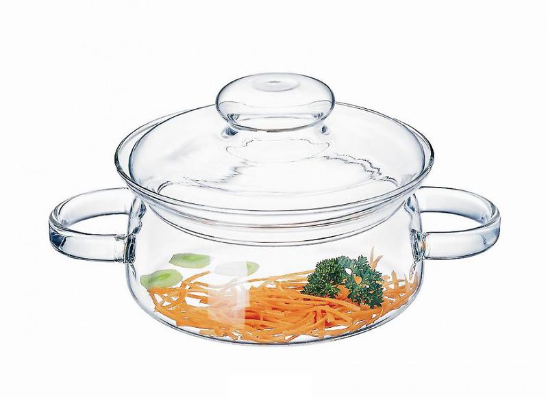 Плюсы: стеклянную кастрюлю можно сразу поставить на стол, так как она приятно выглядит, безопасна для здоровья, не склонна к пригоранию, легка в уходе и ее можно мыть в посудомоечной машине, хорошо подходит для запекания блюд в духовке и хранения посуды в холодильнике, долго сохраняет тепло;