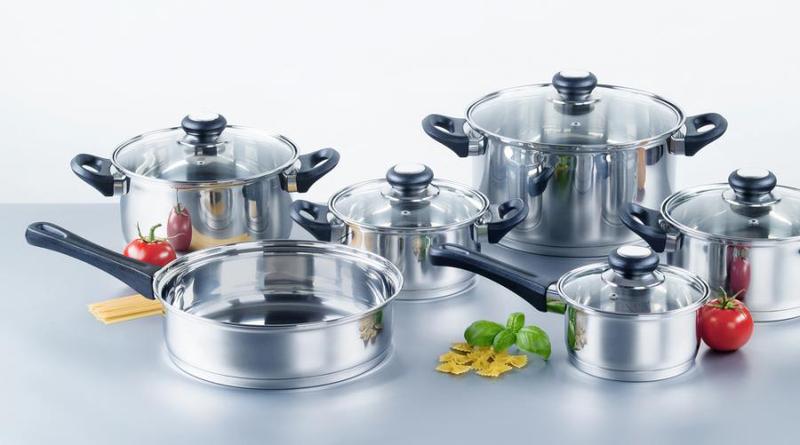 Плюсы: практически идеальная кухонная посуда — кастрюли из нержавеющей стали ударопрочные, износоустойчивые, долговечные, не боятся царапин от ножей, вилок и венчиков, равномерно прогреваются. Также кастрюли из нержавейки просты в уходе – их можно чистить металлическими губками и скребками. Профессиональные повара чаще всего готовят именно в посуде из нержавеющей стали.