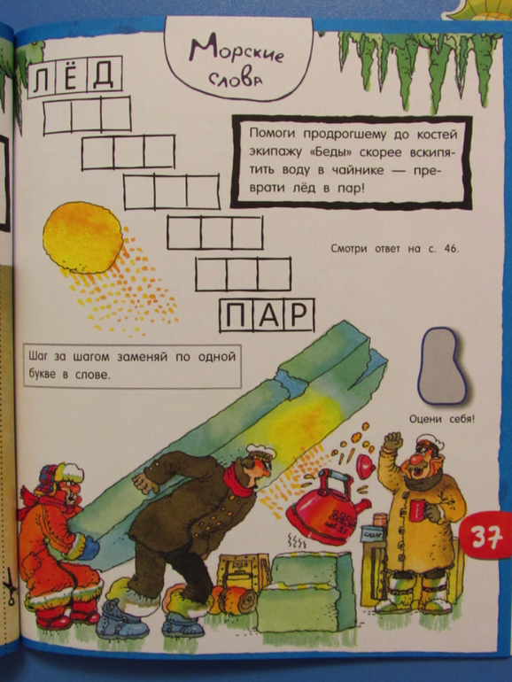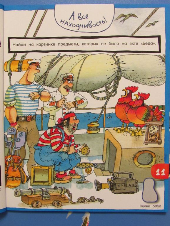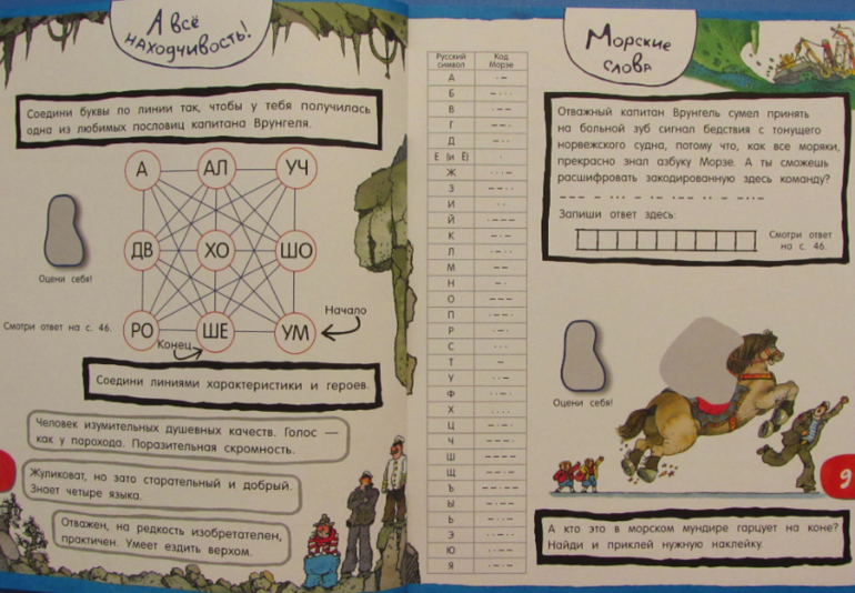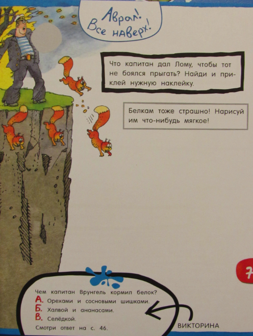 Дополнительно в книжке есть наклейки (два листа), кроссворды, карта с маршрутом путешествия экипажа "Беды" и бумажная модель яхты.