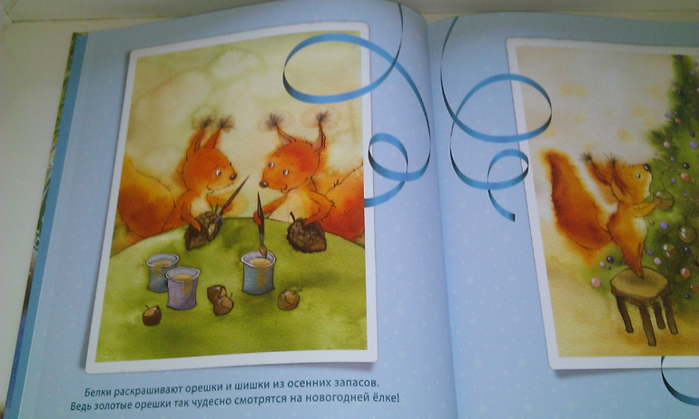 Текста в книге немного, практически нет - всего две-три строчки. Зато много трогательных и милых новогодних рисунков.