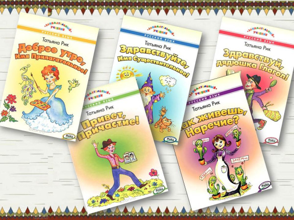 В серии "Веселые учебники по русскому языку" уже вышли учебники о существительном, прилагательном и глаголе, причастии и наречии.