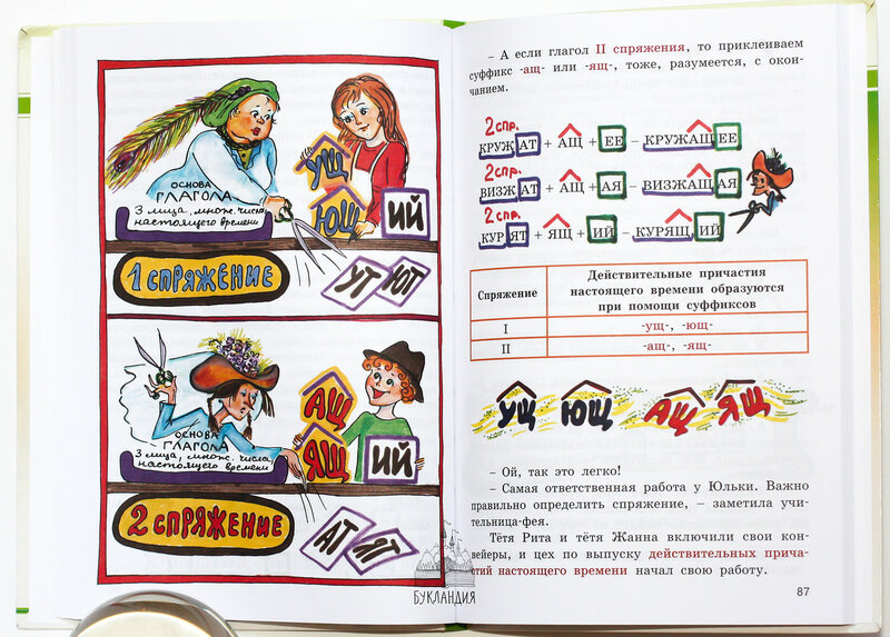 Потрясающее объяснение правил русского языка в смешных запоминающихся рисунках и понятных формулировках и пояснениях. Именно по этому учебнику сейчас повторяет, разбирает и закрепляет тему "Причастия" моя дочь-семиклассница.