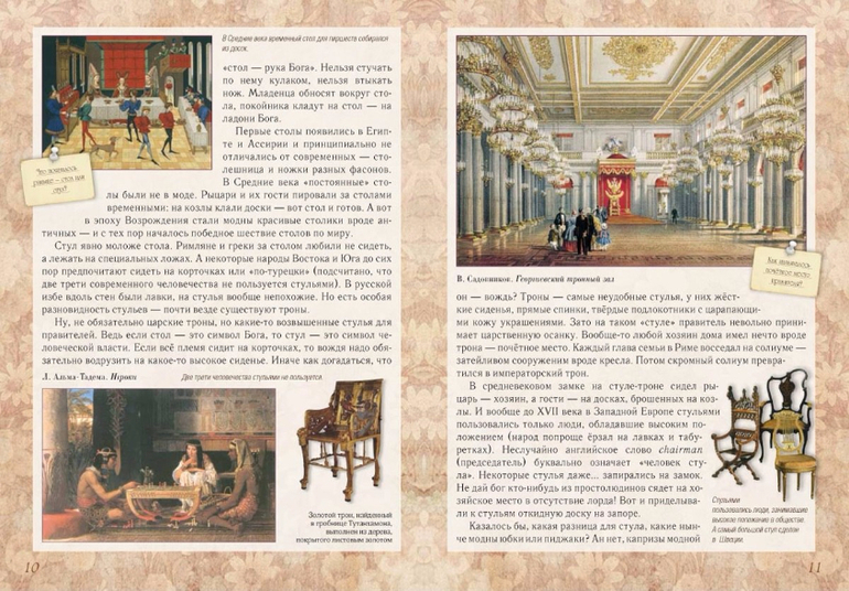 У каждого народа свои представления об удобстве и красоте родного дома. Например, японцы обходятся… без стен. Захотел уединиться - раздвинул бумажную ширму и можешь спать, читать, размышлять о жизни. На Руси когда-то жили в землянках - климат в нашей полосе холодный, так что не согреешься в доме с бумажными стенами. Кто-то строил дома из глины, кто-то из дерева. И все всегда старались сделать его теплым, крепким, красивым. Из книги можно узнать историю вещей, к которым люди привыкли и давно перестали ценить их удивительные свойства. Попробуем разгадать загадки обычных вещей.