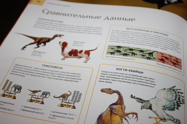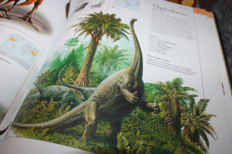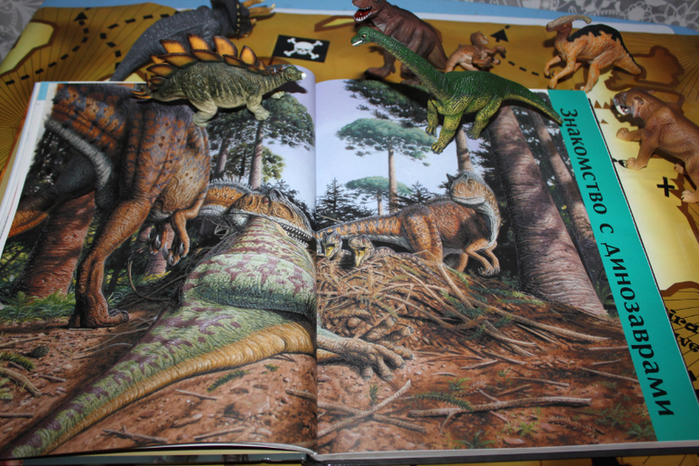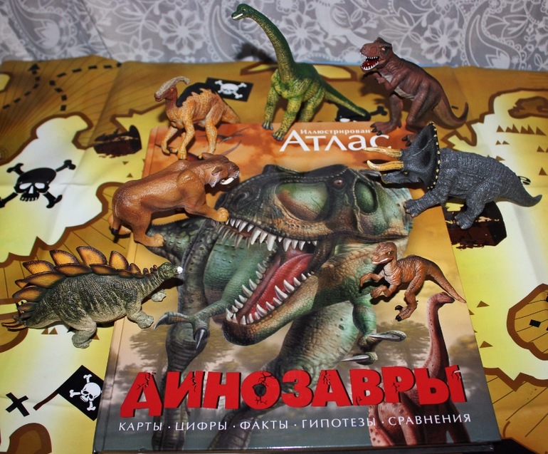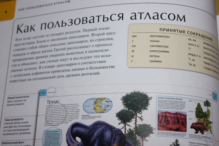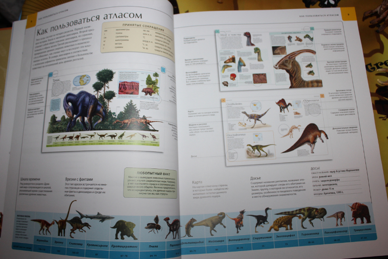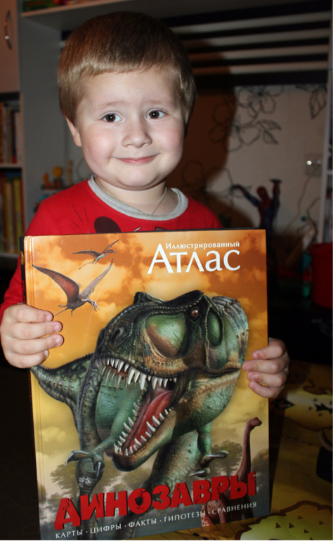 Атлас огромен! (343х274) Информации достаточно.И не забывайте,это не энциклопедия,а атлас!Иллюстрации очень красивые,динозавры как живые.Лично на меня книга произвела только хорошее впечатление.Шрифт вот только мелковат,но если бы был крупнее,то книга была бы еще больше и дороже,либо меньше информации или иллюстраций.А так,все в меру))Никаких сцен с морем крови нет!Книга подойдет как и двухлеткам для рассматривания,так и взрослым,которые далеко уже не детки))Мне например очень интересно почитать,больна динозаврами еще с детства))Помните фильм "Легенда о динозавре",кажется 1977 года?Тогда он еще казался самым страшным и крутым фильмом,хотя нет,слово круто,крутой тогда еще не говорили)))В общем после его просмотра у меня была буря эмоций и впечатлений))и конечно же проснулся интерес к динозаврам)) Книгу купила где то в начале лета.Ребенок,что то не заинтересовался,хоть любит динозавров,зато я с удовольствием и с большим интересом пролистала/почитала книгу.А сегодня, что то на Темика нашло,наверное купленные недавно фигурки пробудили интерес)))пересмотрели и почитали несколько имеющихся книг и конечно же добрались до атласа.Пока больше впечатлили картинки,почитать его почти не удалось,может из-за того,что он был последний.Надеюсь завтра наша страсть не угаснет и мы еще вернемся к такому шикарному Атласу. Хотела пару строк и снова настрочила много букв))