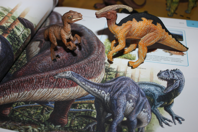 Детальные изображения динозавров;
