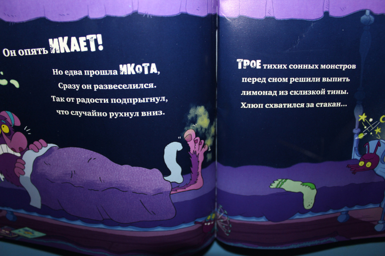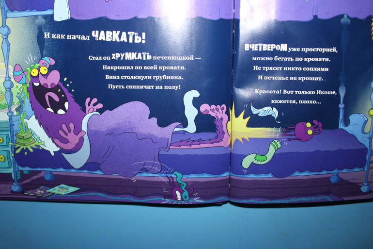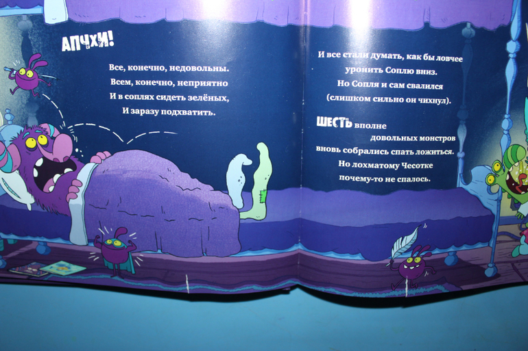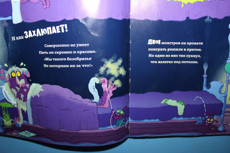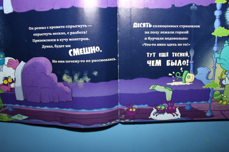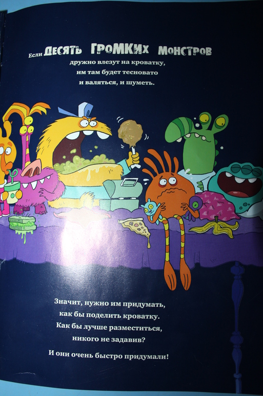 Когда увидела эту книгу,то сразу поняла,что она создана специально для нас))Книжка конечно немного бредовая - так сначала мне показалось.И стихи не везде складные,но.....она создана именно для деток,которые любят всяких монстриков,юмор и приколы....мы в их числе)) рисунки в нашем стиле))а заодно в смешной и игровой форме,не заметно для самого ребенка,легко обучит счету до десяти,проверено на собственном опыте!И в развитие речи,тоже поможет!А забавные звуки,порадуют деток и их родителей!