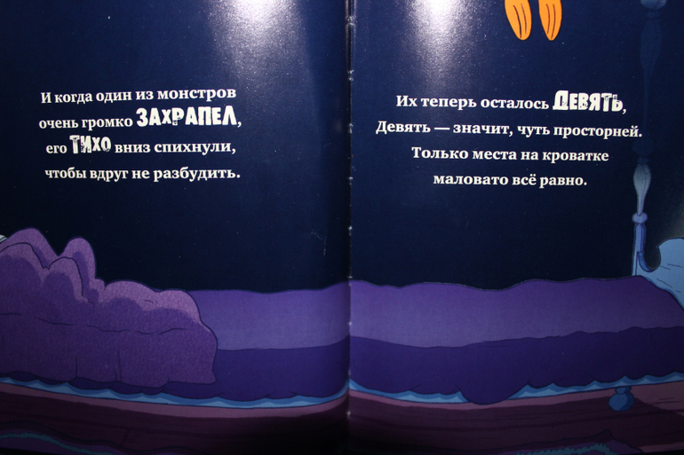 Так как мы долго не выговаривали слова,умели считать только до пяти,до десяти с натяжкой,все по той же причине,что просто дальше не выговаривали цифры и считали до десяти с моими подсказками,так вот,когда у нас появилась эта книга,мало того,что мы научились считать до десяти уже на следующий день,так еще и стали хорошо проговаривать все цифры и имена монстриков) Считаем монстров на каждой странице "А сколько же их осталось?" Зачитали книгу до дыр!Читаем каждый день,вот уже 1,5 месяца!