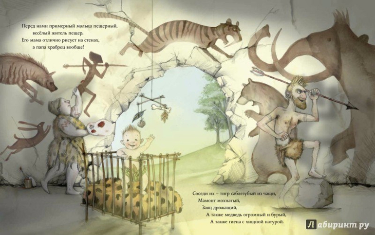 Перед нами примерный малыш пещерный, веселый житель пещер. Его мама отлично рисует на стенах, а папа храбрец вообще! Соседи их - тигр саблезубый из чащи, Мамонт мохнатый, Заяц дрожащий, А также медведь огромный и бурый, А также гиена с хищной натурой.