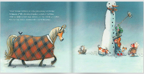 Книжка начинается с радости первого снега и зимних забав. Вместе с обитателями фермы вы слепите снеговика, поиграете в снежки, покатаетесь на санках и будете пить ароматный горячий чай.