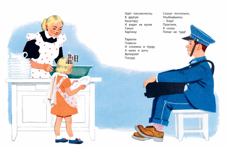 Еще одну милую книжку с известным стихотворением Якова Акима о почтальоне, который никак не может найти ребёнка-неумейку, ждём из типографии на следующей неделе.