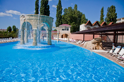 Отель порадует своих гостей пятью бассейнами, которые подойдут отдыхающим любых возрастных категорий. Кроме того, здесь имеется немало других элементов инфраструктуры, которые заинтересуют поклонников активного времяпрепровождения и приверженцев здорового образа жизни, выбравших отдых в Анапе: речь идет о СПА-центре, собственном песчаном пляже, тренажерном зале, спортивных площадках, банном комплексе. На территории комплекса есть ресторан французской и средиземноморской кухни «Mon Plaisir», кафе узбекской кухни «Али-Баба», пиццерия «El Patio» и блинная «Merci Beacoup», фруктовая лавка « Fruiterie».