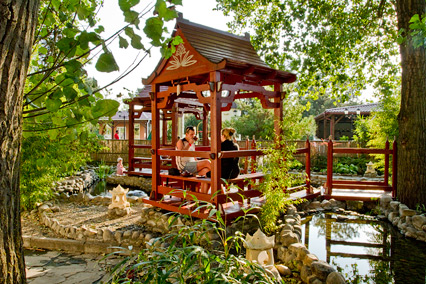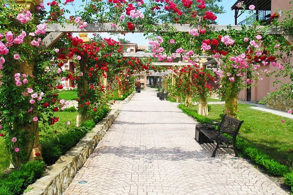 Номера оформлены в духе «французского Прованса» и порадуют любителей утонченных, изысканных и лаконичных интерьеров. Зоны отдыха представлены прудом с рыбами и беседками в китайском стиле, сосновой рощей, розовой аллеей и другими уголками с удивительными образцами местной флоры и фауны.