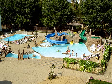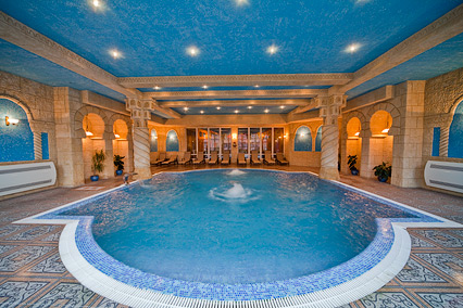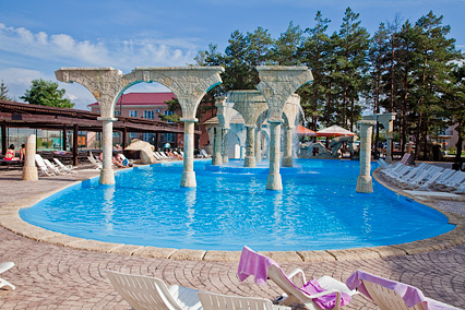 Бассейны: крытый с гидромассажем, вода пресная, работает круглогодично, открытый четыре бассейна под открытым небом: с гидромассажем, с водопадом и баром на воде, водными горками для гостей всех возрастов и детской зоной купания, для водно-спортивной анимации
