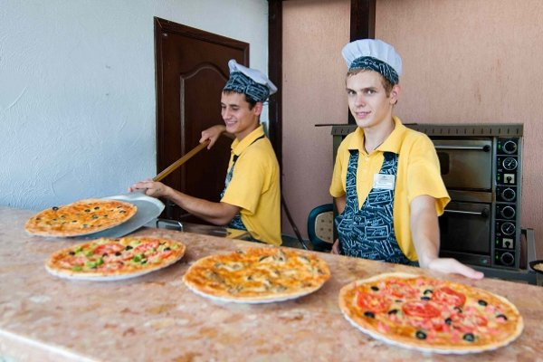 Юных гостей ждёт отдельный шведский стол, пиццерия, блинная, детское кафе «Сладкоежка», свежие фрукты из фруктовой лавки, напитки, питание на пляже.
