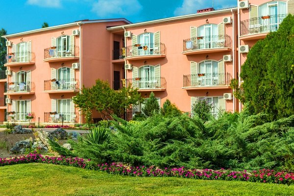 Отель " Ривьера "выдержан в едином средиземноморском стиле Большая огороженная зеленая территория (4 ГА). Большой перечень услуг и развитая инфраструктура для семейного отдыха. Наличие крытого бассейна и комплекс открытых не подогреваемых бассейнов. Наличие медицинского центра и СПА комплекса. Собственная команда анимации. Малая удаленность от пляжа (350 м). Песчаное побережье с пологим дном, безопасное купание для маленьких детей. Прием детей с любого возраста. Скидки для детей до 12 лет при размещении на доп. местах: 1й ребенок - 100%, 2й ребенок - 50%. Удобное расположение относительно транспортных узлов: аэропорт, ж/д вокзал, автовокзал. Ежедневный бесплатный трансфер в город (утром и вечером). Wi-Fi в гостевых зонах и номерах.