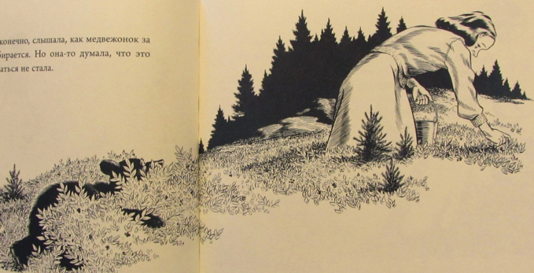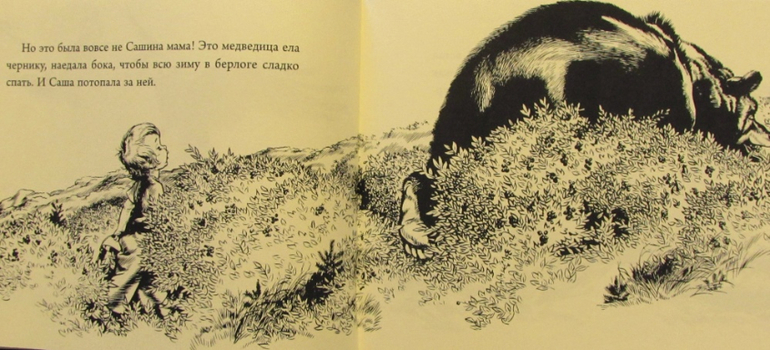 Хорошо, что Сашина мама обнаруживает, что за ней идет не ее дочка, а медвежонок. То же самое происходит с медведицей.