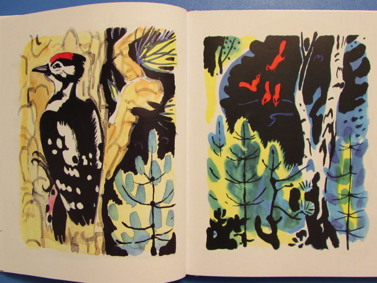 Иллюстраций Мая Митурича в книге много, на каждой странице, и большие и маленькие - всякие. Есть развороты вообще без текста.