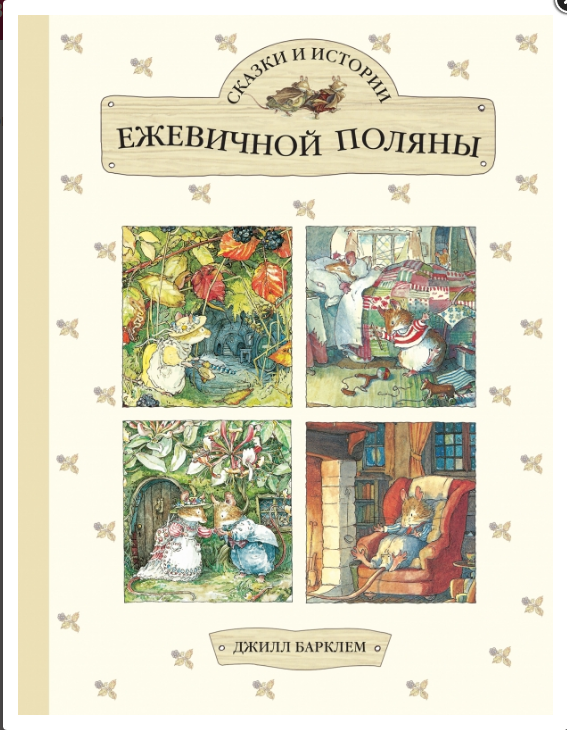 Впервые публикуется в России. Никогда еще мышки не были такими симпатичными! Джилл Барклем создала на страницах своих книг настоящее английское поместье, в котором жизнь течет так же, как пару сотен лет назад. У героев море забот и дел: нужно вести домашнее хозяйство, сделать заготовки на зиму, наготовить разных вкусностей для пикника, отметить свадьбу, дни рождения, Рождество - всего не перечесть! Вот только герои - отнюдь не седовласые сквайры и их степенные супруги, а очаровательные полевые мышки, которые живут на Ежевичной поляне внутри большущего дерева. книгу входят 8 частей: «Весенняя история», «Летняя история», «Осенняя история», «Зимняя история», «Потайная лестница», «Высокие холмы», «Морская история», «Дети Маковки». Джилл Барклем - английская детская писательница и иллюстратор, «Ежевичная поляна» в 1980 г. стала ее литературным дебютом, сразу же покорившим читателей. В течение короткого времени истории «Ежевичной поляны» были переведены на 30 языков мира, продано более пяти миллионов экземпляров. Барклем родилась в небольшом городке в Англии, с детства она проводила много времени на природе, в саду, наблюдая за растениями и насекомыми. В юности Барклем переехала в Лондон, и после тихой сельской жизни ей было сложно привыкнуть к большому городу, подчас недружелюбному и мрачному. Ее спасением стали наброски воображаемого мира полевых мышек, которые она делала в метро по дороге в художественный колледж, "убегая", таким образом, от реальности. Со временем наброски превратились в то, что мы знаем как «Ежевичную поляну». Джилл подошла к делу обстоятельно: написанию первой книги предшествовало целое исследование истории и быта английской деревни 19 века. Все кушанья, которые готовят мышки на своих кухнях, Джилл сначала пробовала готовить сама, чтобы убедиться, что они и вправду вкусные. Над каждой иллюстрацией она работала около трех месяцев.