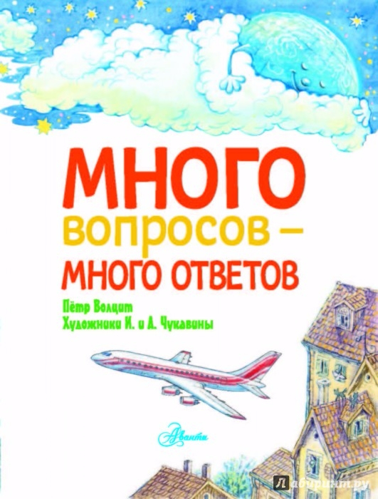 В сборнике произведений П. Волцита "Много вопросов - много ответов" герои книг - Маша и Серёжа узнают много чего интересного: откуда берутся ветер, дождь, снег, молния, гром и другие атмосферные явления; откуда взялись и как человек добывает полезные ископаемые - нефть, газ, уголь; об истории воздухоплавания и почему самолёты летают; о круговороте воды в природе и как человек научился использовать воду; о том, из чего устроено всё на свете - о мельчайших частичках - атомах. Для младшего школьного возраста.