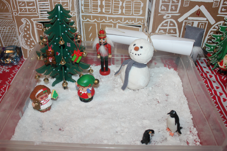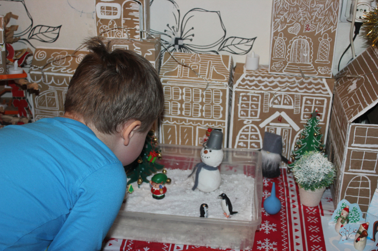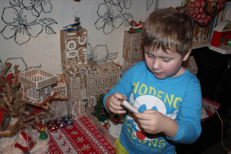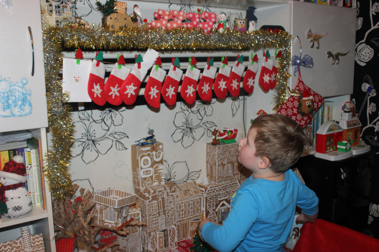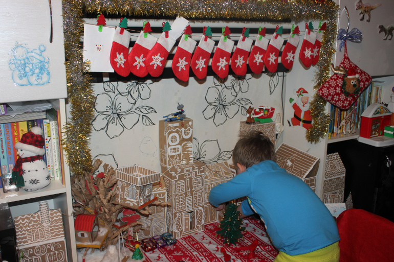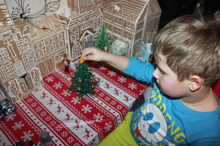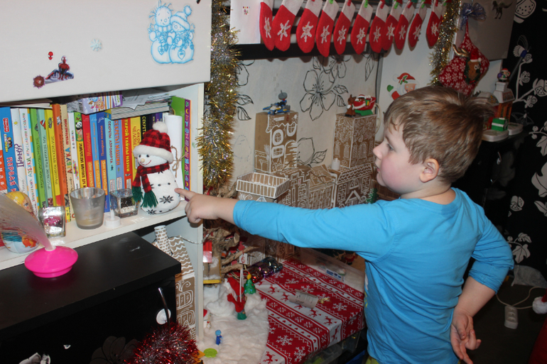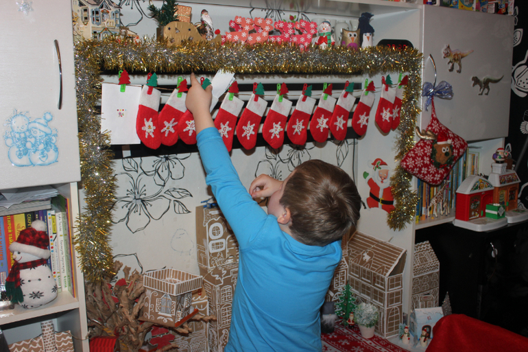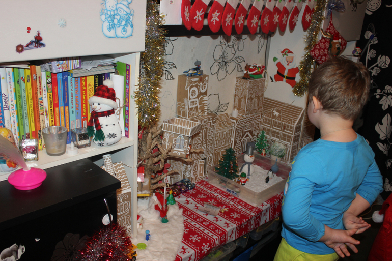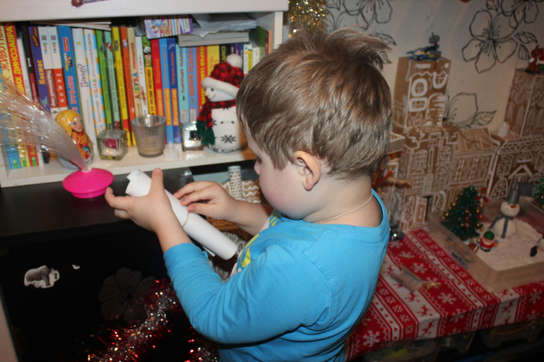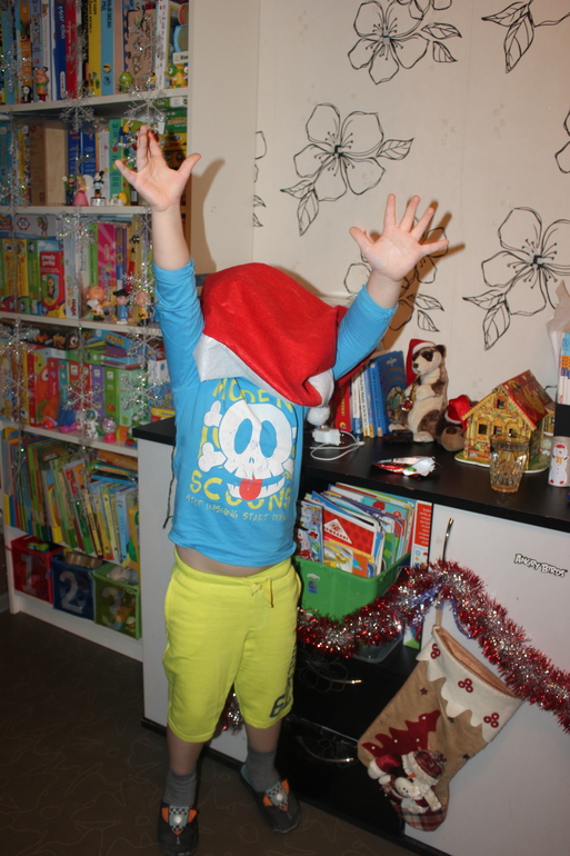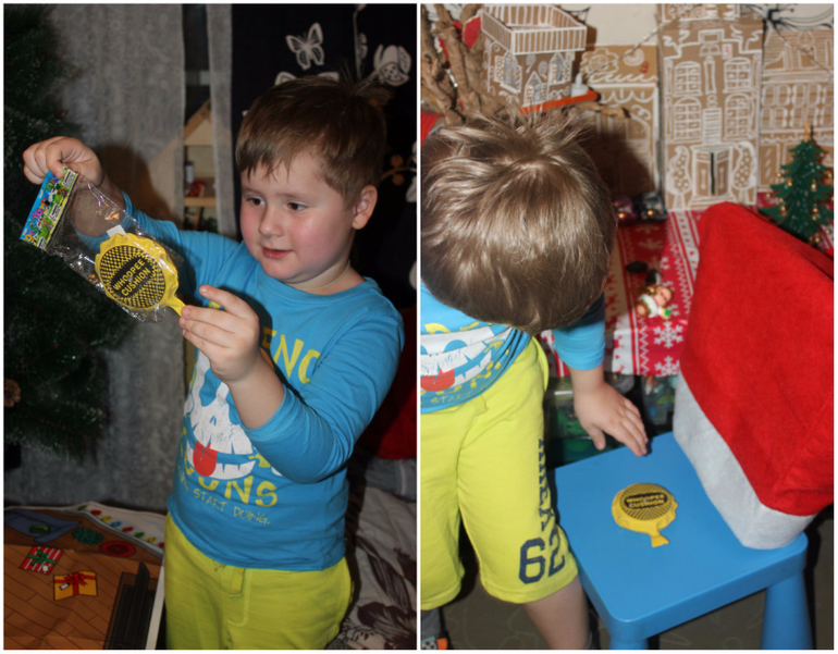 пока Темик потянулся за Щелкунчиком,что бы показать пропавшую звезду,я подсунула в носок подсказку))