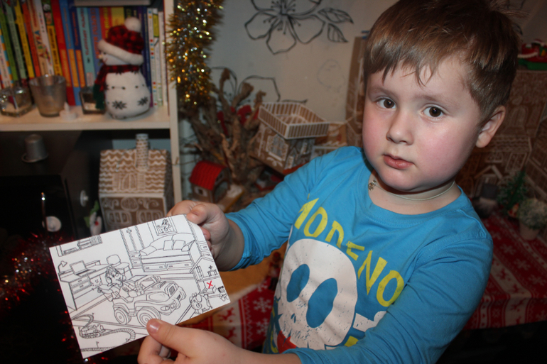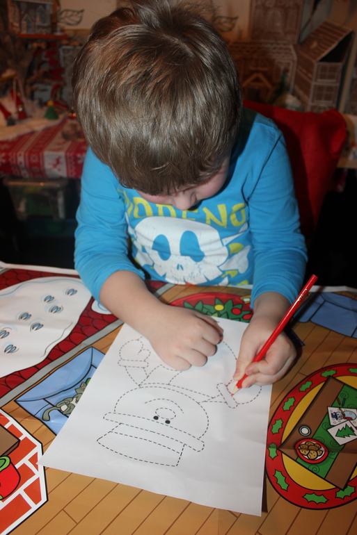 как хорошо,что на листе есть надпись....Темик подумал,что это зашифрованная подсказка)) что если он нарисует снеговика,мы сможем ее прочесть.