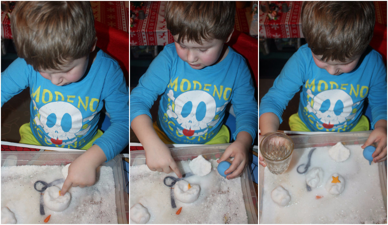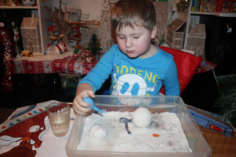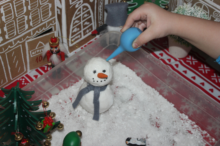 а там задание: нарисовать снеговика по пунктирам и будет тебе еще подсказка))