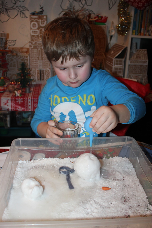 А делать нужно вот что,растопить нашего снеговика.Как раз в этот день была слякоть,моросил дождь... (так совпало,что реально стояла такая погода) Вот дождик то нам в этом и поможет.