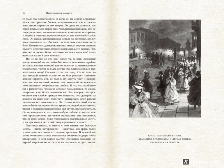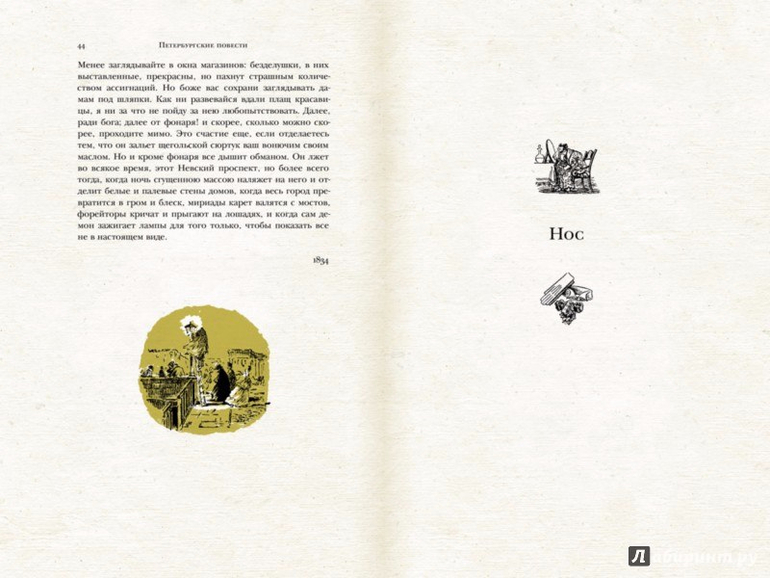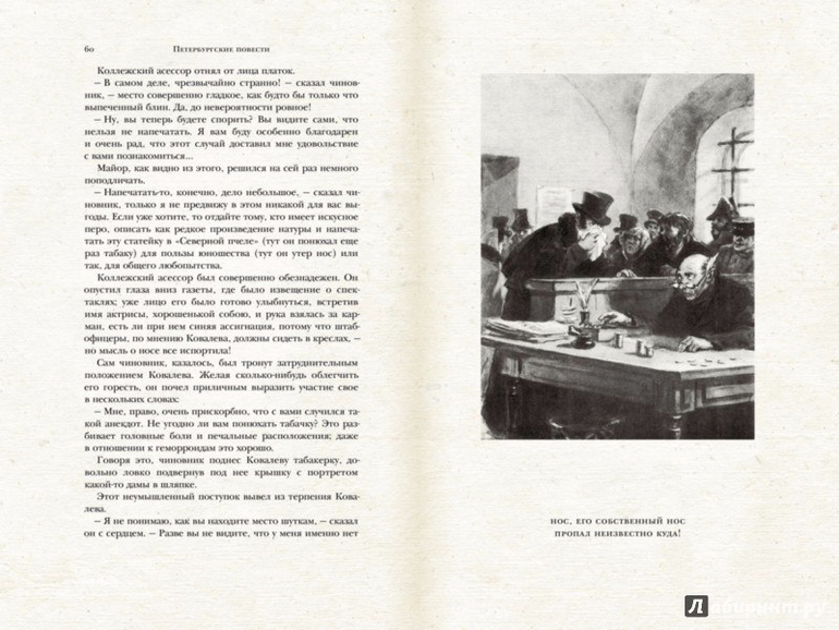 Неслучайно повесть "Невский проспект" стоит первой в этом сборнике, противопоставляя внешнюю красоту и напыщенность северной столицы с внутренней пустотой ее обывателей. Издание выполнено с тиснением на обложке, содержит ляссе (ленточку-закладку).