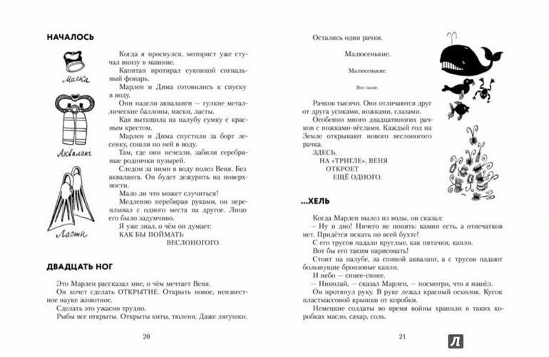 Книга "Подводные приключения" Святослава Сахарнова объединяет повести "Путешествие на Тригле", "Трепанголовы" и "Дом под водой".