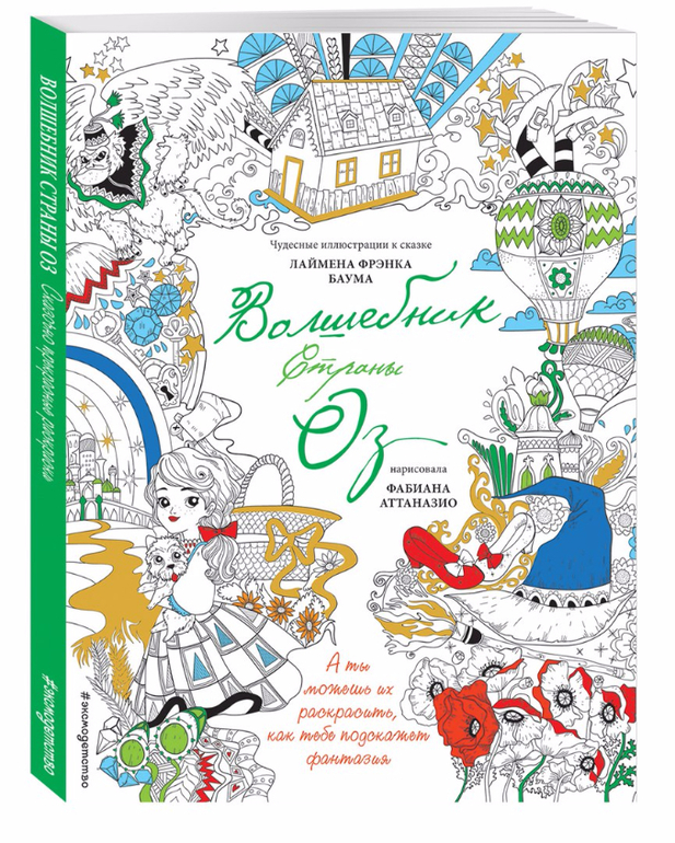 Теперь волшебную сказку можно не только перечитывать, но и нарисовать! Итальянская художница Фабиана Аттаназио создала волшебные иллюстрации к книге Лаймена Фрэнка Баума, а ты можешь их раскрасить, как тебе подскажет твоя фантазия. ВНИМАНИЕ! Зеленые очки надевать не рекомендуется!