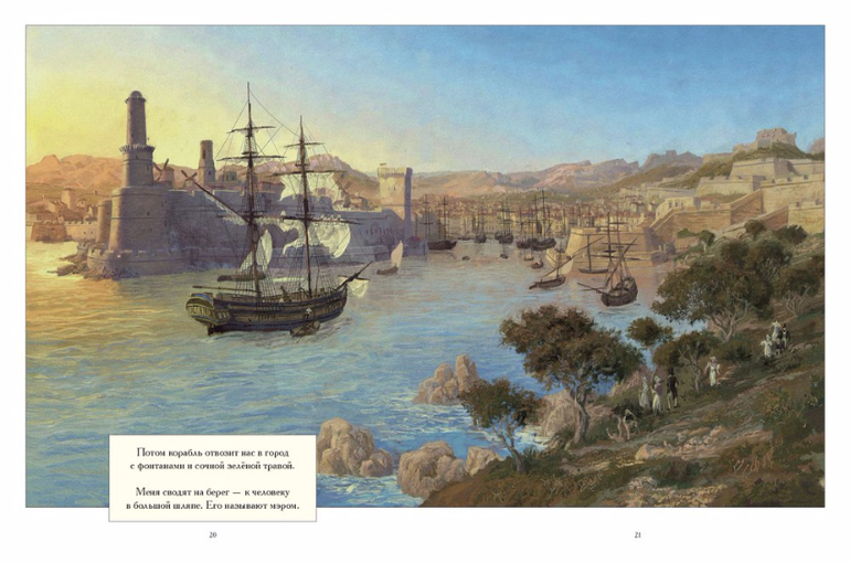 Невероятно красивые панорамные иллюстрации, созданные известным французским художником Лораном Гапайаром, помогают почувствовать себя участником приключений и вместе с жирафой пройти весь путь: отправиться из жаркой африканской саванны в плавание на корабле с алыми парусами, а затем прибыть в Марсель, и уже оттуда пересечь почти всю Францию и появиться перед самим королем!