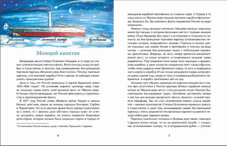 Имя адмирала Макарова вошло в историю русского флота. Он первым применил мины против кораблей противника, придумал, как увеличить пробивную силу снарядов, изобрёл русскую семафорную азбуку для связи между судами, разработал пластырь от пробоин, стал капитаном первого русского ледокола. Память о великом флотоводце и учёном будет жива, пока в мире есть моряки и корабли.