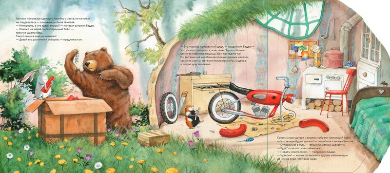 Однажды на пороге своей берлоги мишка Бадди увидел загадочную посылку. Вместе с друзьями, хомяком Щокастиком и зайчонком Хвостиком, удивленный медвежонок раскрыл коробку и нашел кучу железяк, винтики, сиденья и какие-то лампочки. Что же это такое? К счастью, Щокастик прекрасно разбирается в транспортных средствах! Именно он и догадался, что все это — детали одного, но очень быстрого байка!