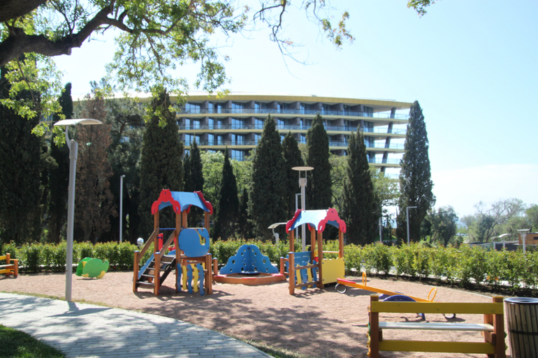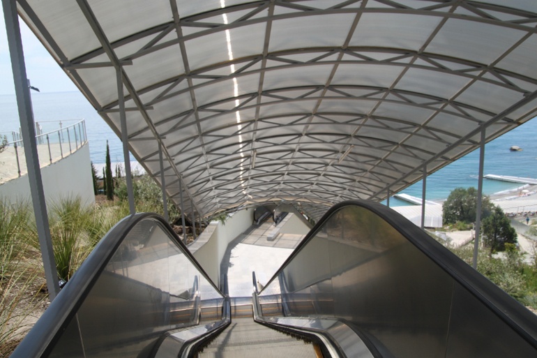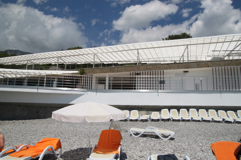 Пляж:1-я пляжная линия. Собственный мелко-галечный пляж. Для спуска и подъема на территории отеля работает система эскалаторов. Пользование пляжем, включая лежаки, зонты и полотенца (в пляжный сезон) включено в стоимость.