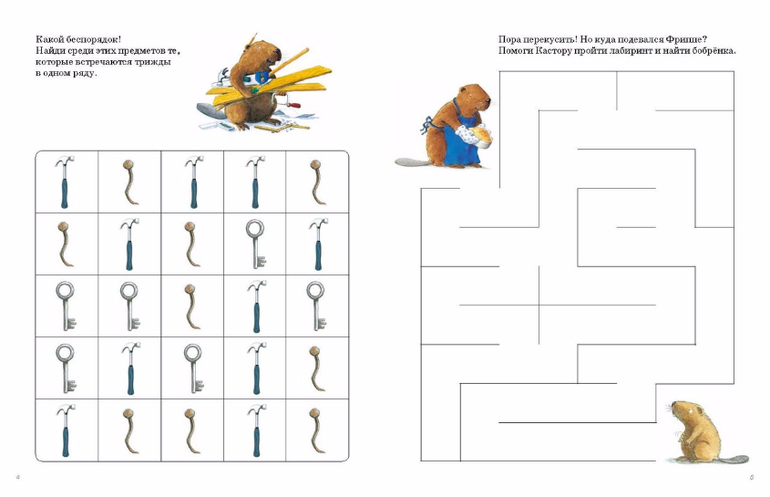 Впервые Кастор предлагает поиграть с ним вместо того, чтобы делать что-то полезное и хозяйственное: печь, выращивать фасоль или чинить велосипед. Лабиринты, наклейки, дорисовывалки - в общем, в книге найдется всё, чего раньше ни у нас, ни у Кастора не было. От 3 до 6 лет.