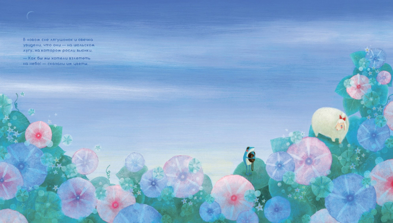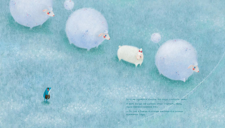 Так Квак знакомится с чудесной маленькой овечкой и отправляется с ней в путешествие по снам. Они попадают в разные места и разные времена года.