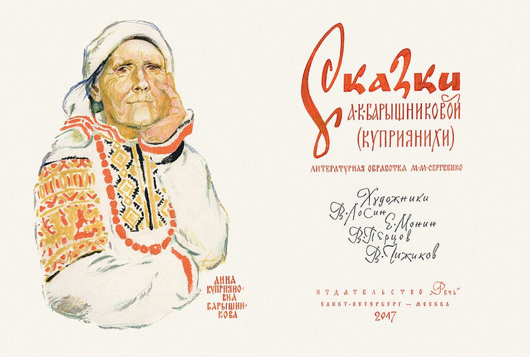 В 1958 году издательство "Советская Россия" предложило художнику Вениамину Лосину оформить сборник из 13 сказок, записанных за неграмотной крестьянкой из Воронежской губернии Анной Куприяновной Барышниковой - тёткой Анютой, Куприянихой. Работа была большая - издательство решило сделать очень яркую, красочную книгу, большого формата, на хорошей бумаге - словом то, что сегодня и называется "подарочным вариантом". Всего нужно было сделать порядка ста иллюстраций: кроме собственно сюжетных рисунков, нужно было нарисовать буквицы, заставки, колонцифры и пр. Художник не успевал сдать работу к сроку и как-то пожаловался своим друзьям. А друзья решили помочь... Так и получалась книга четырех художников...