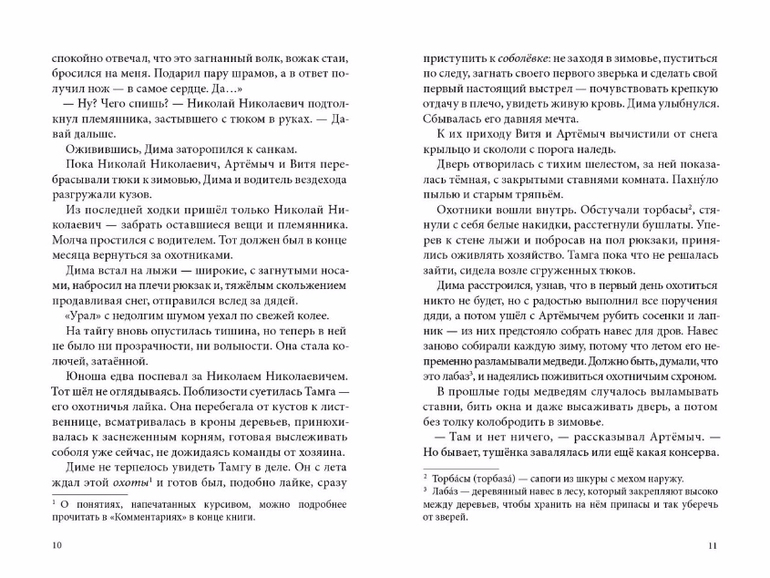 В четырнадцать - ты уже не ребёнок. Понимаешь больше, людей знаешь лучше, природу чувствуешь тоньше. Дима шёл на долгую соболиную охоту с одной мыслью: с первым убитым зверем он преобразится и вернётся в город настоящим мужчиной. Проводник во взрослый мир - дядя Николай Николаевич, умеющий читать следы на снегу лучше, чем Дима читает свои книжки. Помогут юноше и балагур Артёмыч, и охотник поневоле Витя, и чуткая лайка Тамга - но откровением станет встреча с неуловимым вороном.