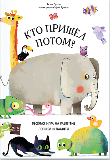 В книге собралась целая процессия симпатичных животных. Первым притопал слон с божьей коровкой на спине. За ним - тигр со своим другим псом. Кто ушёл? Кто пришёл потом? Эта интерактивная книжка-картинка развивает аналитические способности ребёнка - концентрацию, наблюдательность, память. Игра увлечёт даже самых маленьких, а простые фразы делают книгу идеальным вариантом для первого самостоятельного чтения. Обсуждайте животных, считайте, сравнивайте формы, размеры и цвета, а главное - попытайтесь угадать, кто же пришёл потом?